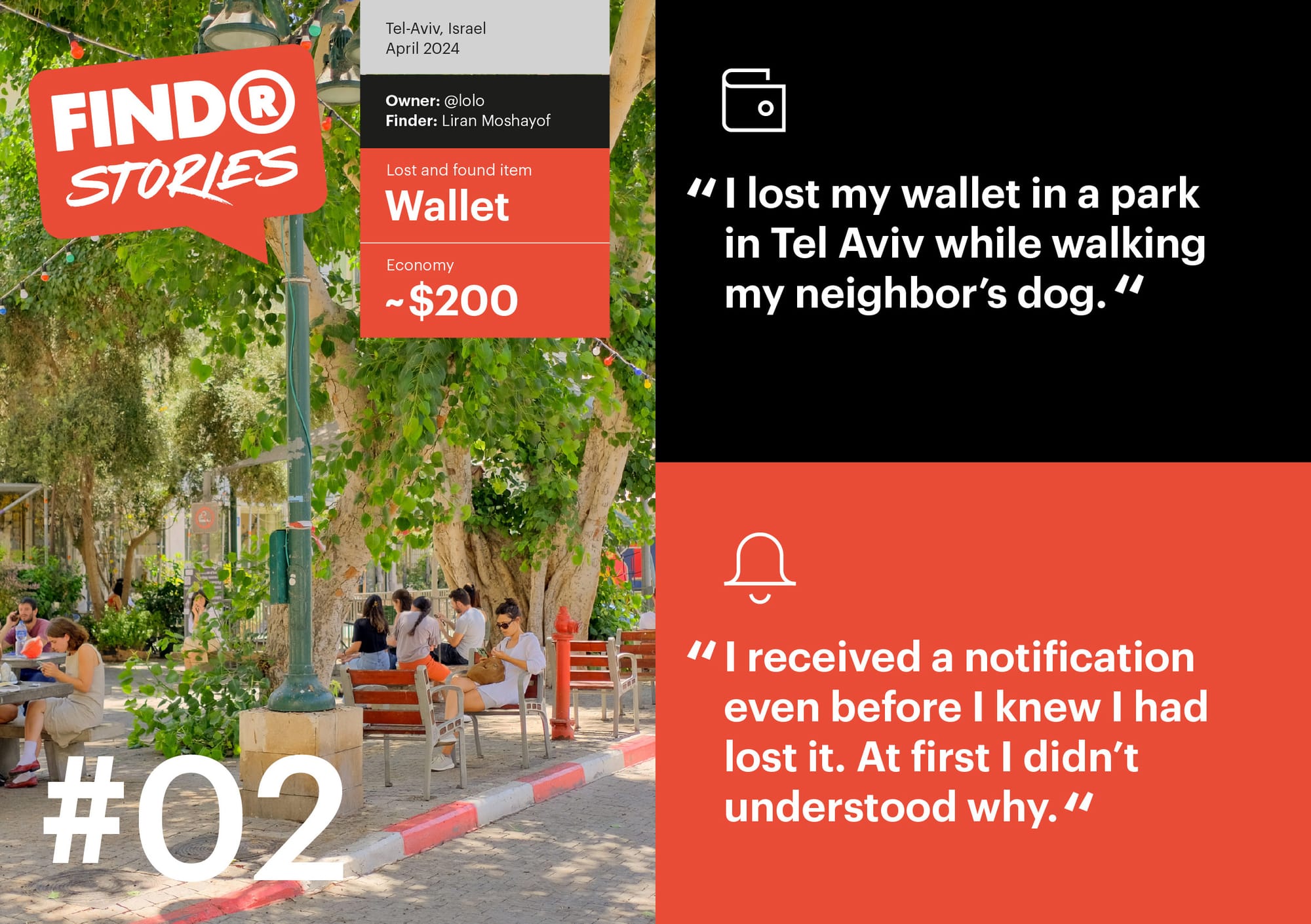 Liran instantly scanned the FindR Sticker visible in the wallet and loved the concept: simple, smart, and deeply human.